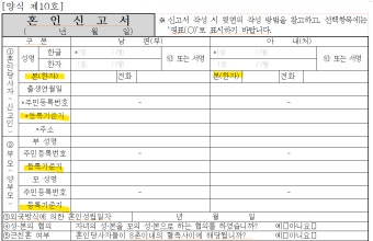 - 혼인당사자 성명, 주민번호, 등록기준지, 주소